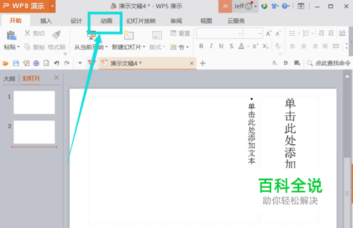 点击菜单栏的 动画项,或者点击页面右边框上的箭头