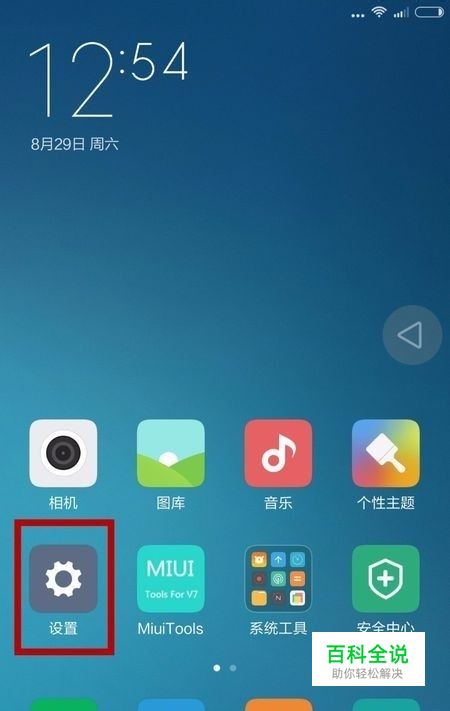 在小米手机桌面上点击设置图标进入。如下图所示: