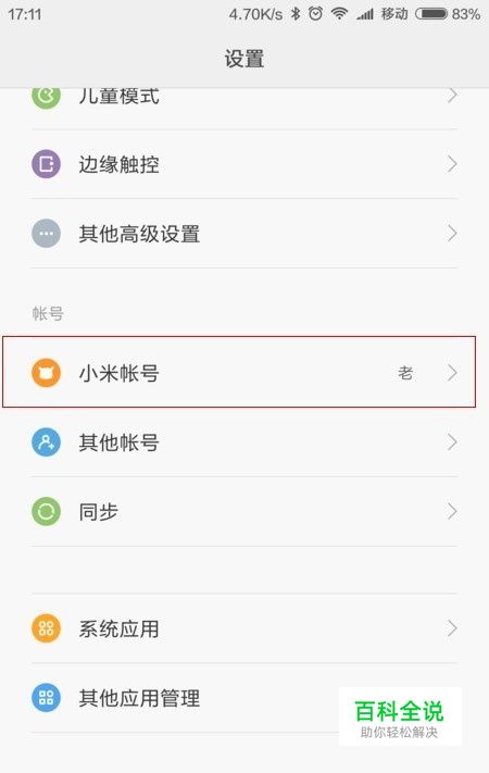 进入设置列表界面,点击小米帐号选项进入。如下图所示: