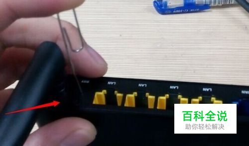 这个时候准备一个回形针或是大头针比较细的东西捅到【RST】孔内。捅进去有感觉像是按钮按下去的感觉,按下去五秒。再松了。