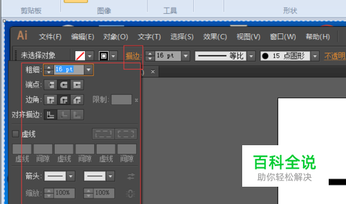 我们在AI中找到钢笔工具,注意此时用到的主要是描边,我们可以点击描边进行其他方面的设置,比如圆角虚线等。