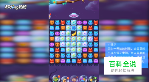 因为一开始的时候,金豆荚会出现在雪花中间,所以首要任务是消除这些冰块,值得注意的是绿色的雪花要消除四次才能够彻底消除。