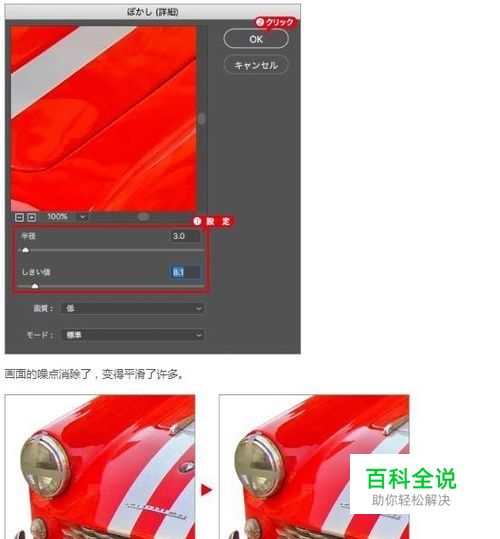 在“滤镜”菜单中,选择“模糊”中的“特殊模糊”。在弹出的窗口中,将半径设置为3,阈值设置为8.1,点击确定按钮。