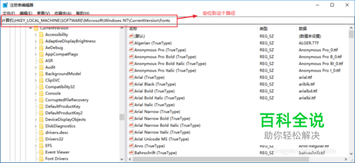按快捷键 Win + R,打开运行,输入 regedit,打开 注册表编辑器。定位到这个路径: 计算机\HKEY_LOCAL_MACHINE\SOFTWARE\Microsoft\Windows NT\CurrentVersion\Fonts,如下图所示: