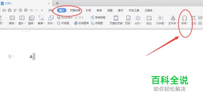 插入--符合 打开一张Word文档,在任务栏中点击【插入】,然后在下方找到【符合】,如下图所示:
