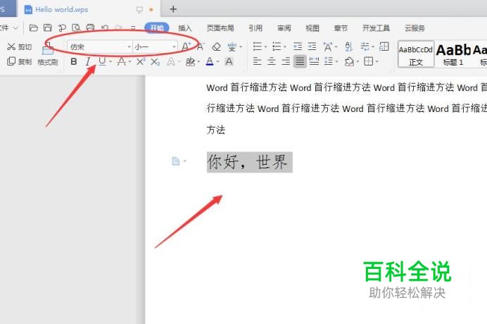 字体 现在文档中写上文字,然后选中文字后更改字体的样式,比如更改为仿宋,如下图所示: