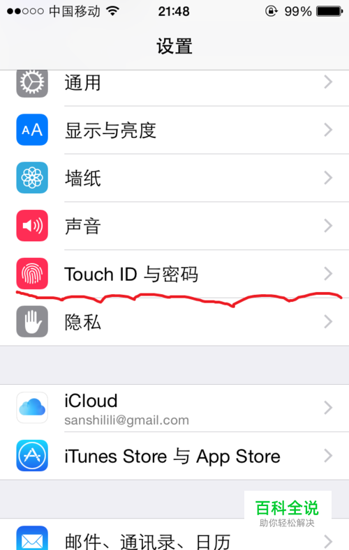 打开手机,进入手机桌面的设置,点击进入Touch ID与密码