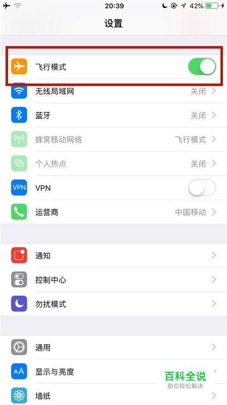 然后开启飞行模式开关,如下图所示。