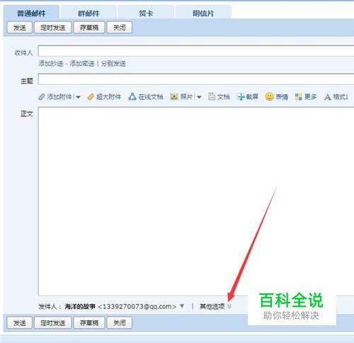 进入普通邮件的写信页面,点击右下方的“其他选项”
