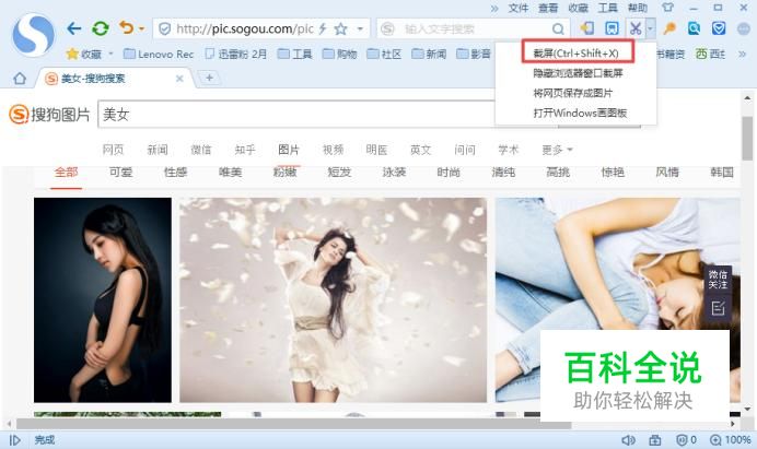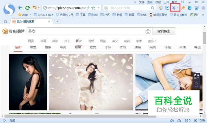 首先,我们打开我们电脑上面的浏览器,然后我们登录一个网页,我们假设图片都无法另存为,我们可以点击工具栏中的那个剪刀边上的下拉箭头;