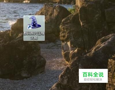 首先在我们的电脑桌面上找到数码照片压缩大师并点击它,如下图所示。
