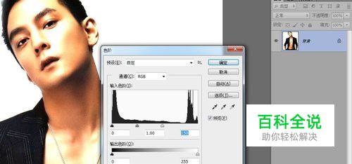 打开要处理的素材,然后Ctrl+L 打开色阶调整人物的明暗度,参数如下