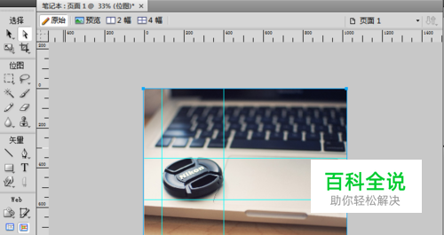 打开Fireworks制图软件中,已经排好标尺线(网络线)的图片。