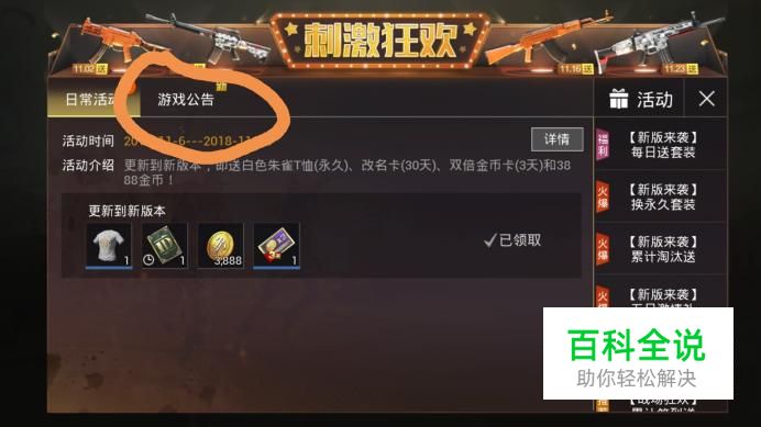 进入活动界面之后,点击左上角的“游戏公告”选项