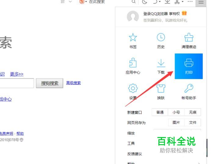 点击浏览器右方的设置,如下图所示,三条横线的位置,展开后选择打印