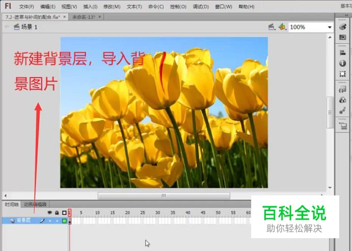 首先打开Flash软件,新建一个背景图层,然后导入背景图片,如下图所示
