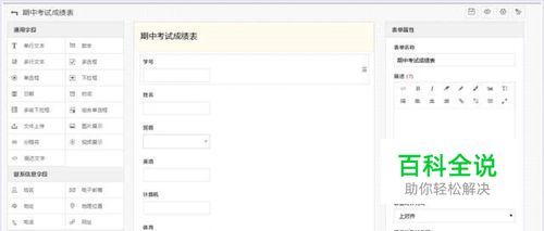 制作一个成绩表单 表单内包含学生的姓名、学号、学科成绩等字段, 用以录入学生的成绩等相关信息