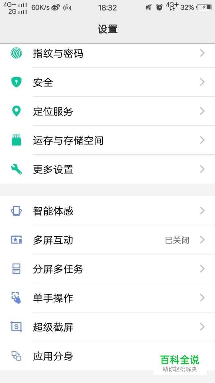 然后我们在跳出来的选项中手动找到并且点击分屏多任务。