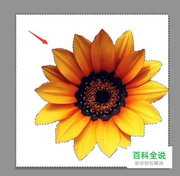 选择魔术棒工具点击图片的背景,我们就得到了背景的选区,如图所示: