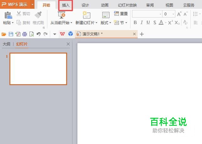 首先,我们打开我们电脑上面的wps演示,然后我们点击插入;