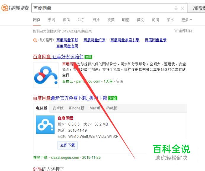 进入之后,搜索“百度网盘”,点击并进入,如图所示。