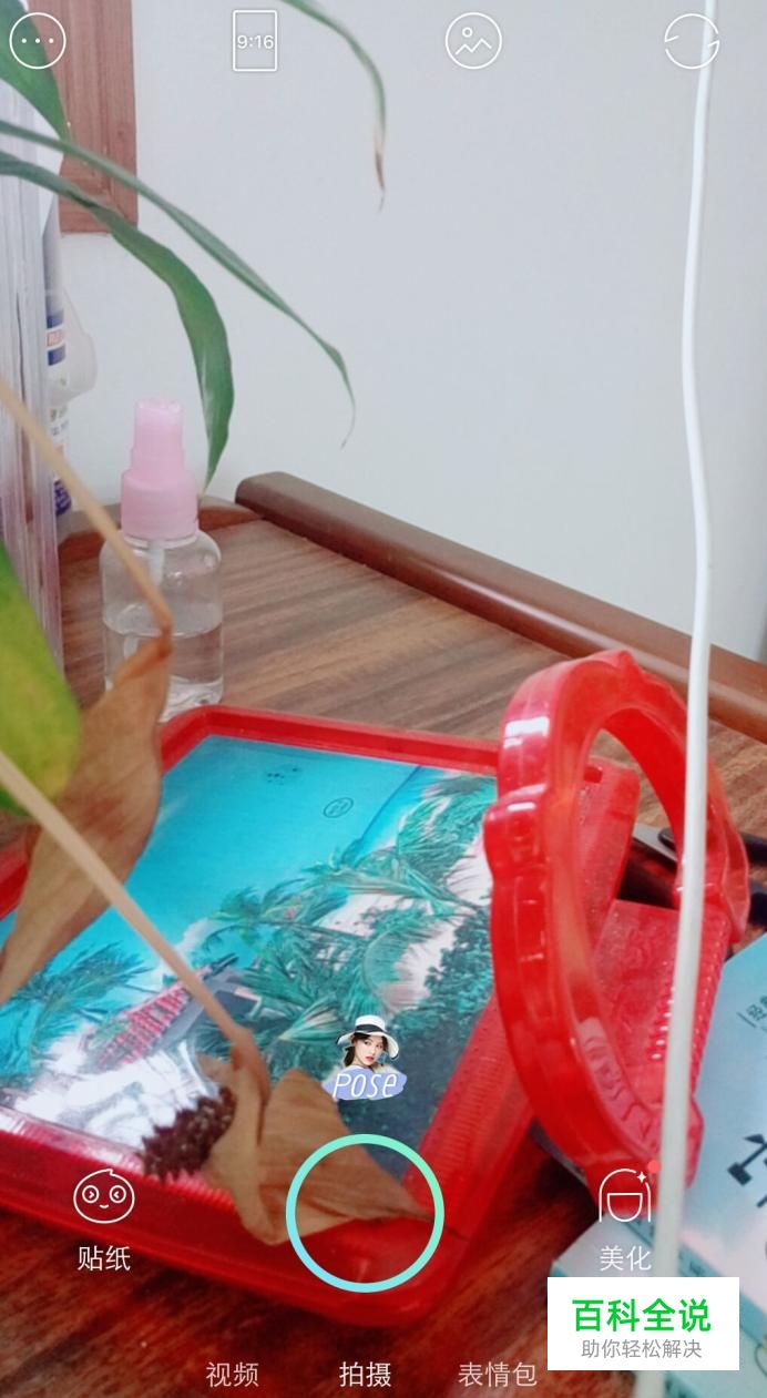 摄像头调整完成后,点击左边的贴纸进入。
