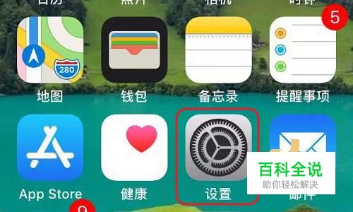 首先点击苹果手机桌面上的“设置”这一选项,如下图...