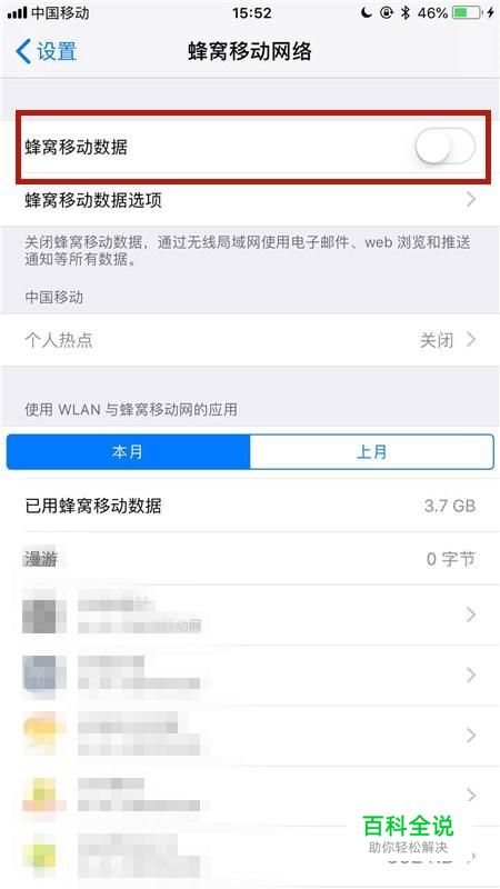 接着点击开启蜂窝移动数据开关,如下图所示。