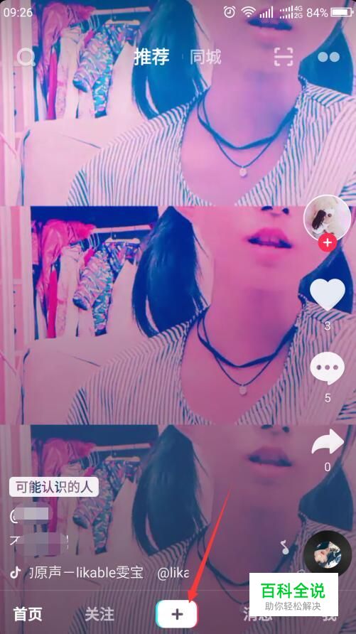 首先,在安卓手机上打开抖音,点击底部中间的+按钮。