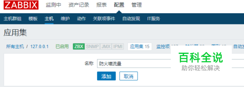 采集数据之前需要先配置应用集,应用集的作用就是将监控项,及数据指标进行分类分组。首先找到需要配置的主机,配置,主机,应用集。