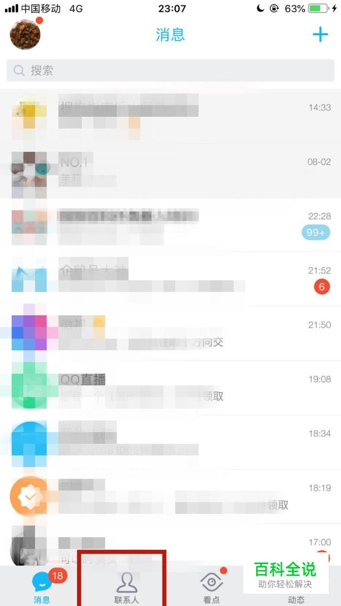 然后点击屏幕下方的联系人,如下图所示。