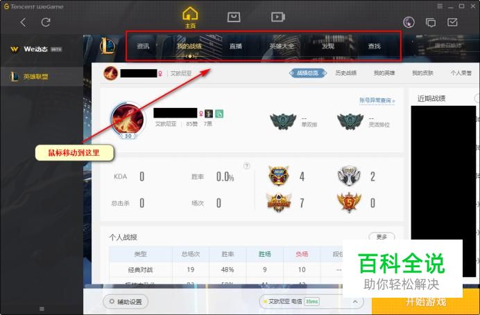 在WeGame中切换到英雄联盟的版块之后,将鼠标移动到上面的菜单上
