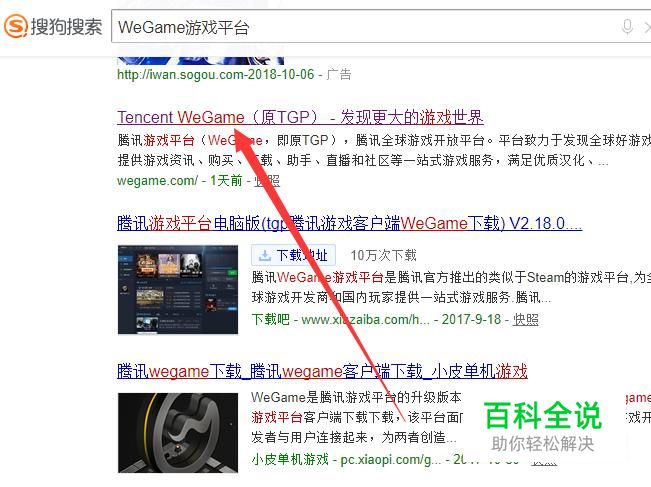 进入之后,搜索“WeGame游戏平台”,点击并进入,如图所示。