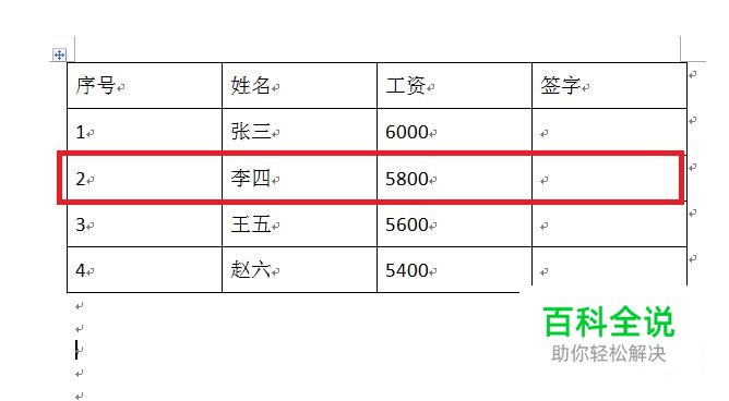首先,我们在Word中任意制作一个表格来演示,如图所示,我需要在标记处下方插入一行。
