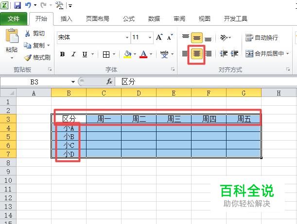 之后我们在表格中输入如图所示的内容,然后选中表格,将里面的字体全部居中设置;