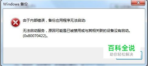 在对Windows 7进行备份和还原时弹出“由于内部错误,备份应用程序无法启动:无法启动服务,原因可能是已被禁用或与其相关联的设备没有启动”的错误提示,正如提示框讲的一样是由于Windows备份和还原服务被禁用引发的。