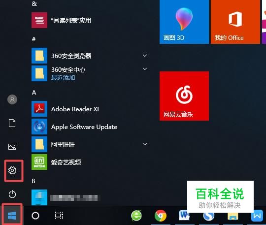 首先,我们打开我们的电脑,然后我们点击开始按钮,弹出的界面,我们点击设置;