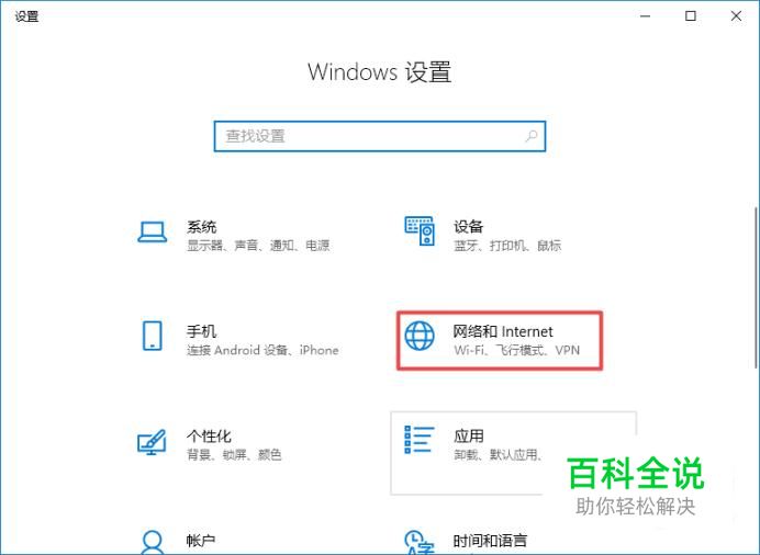 弹出的界面,我们点击网络和Internet;