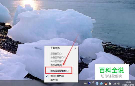 首先鼠标右键点击下方的任务栏,接着再点击【启动任务管理器】。