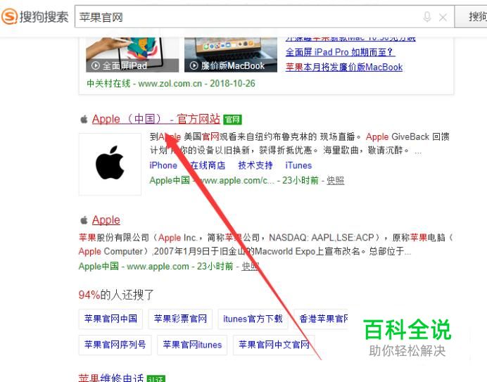 进入之后,搜索“苹果官网”,点击并进入,如图所示。