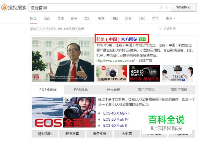 首先在搜索引擎中搜索佳能官网,选择带有官网字样的链接点击;