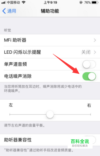 首先我们尝试打开iPhone8手机上面的【电话噪声消除】功能,在听听手机上面噪声是否可以解决,不行的话关机重启一下手机。