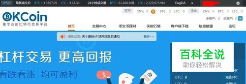 首先打开OKCOIN平台,登陆自己的账号之后点击“进入交易中心”