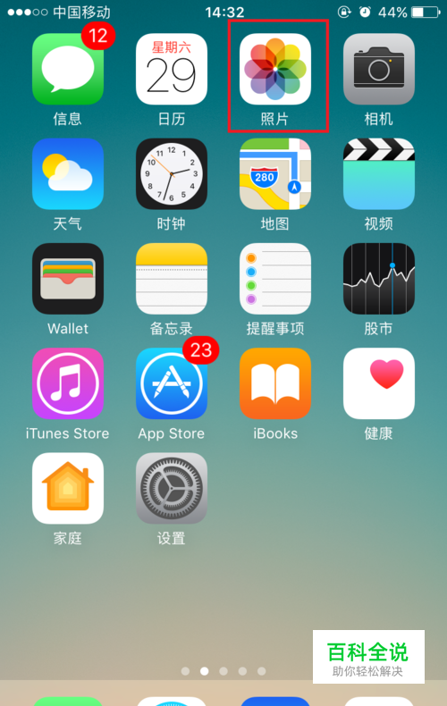 首先我们解锁打开我们的手机,在我们手机应用中找到“照片”选项。选择打开。
