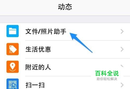 在动态列表中找到“文件/照片助手”一样,点击进入,如图所示