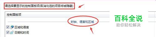【时钟、语言和区域】项,如下图所示; 注意:请选择要显示的控制面板项(取消勾选的项目将被隐藏)