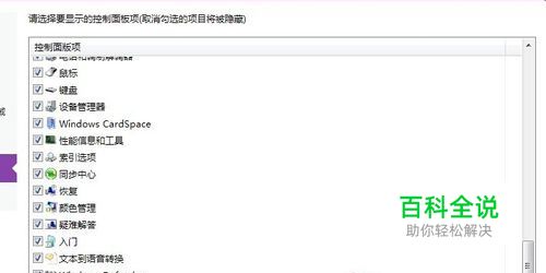 【系统和维护】项,如下图所示; 注意:请选择要显示的控制面板项(取消勾选的项目将被隐藏)