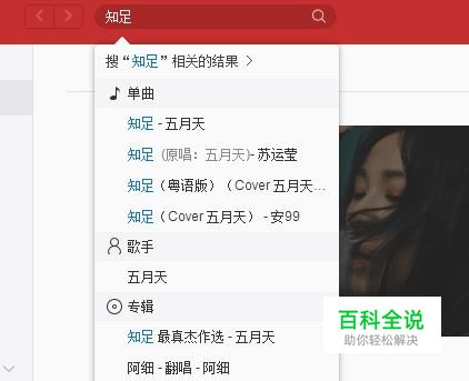 然后在屏幕上方的搜索栏输入我们想要的歌曲名称并点击回车键,如下图所示。