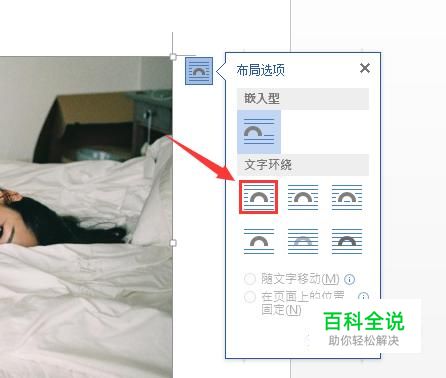 使用word将我们的文件打开,然后选择图片在图片的右上角找到布局选项,如图所示: