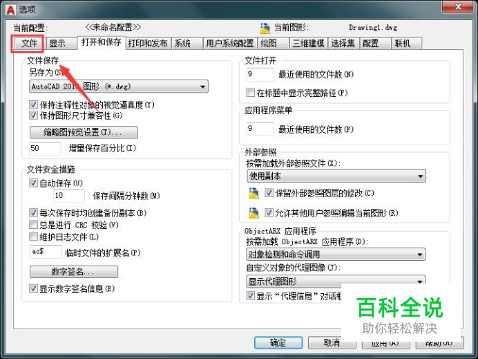 点击选项在弹出的对话框内找到文件选项,如图所示: